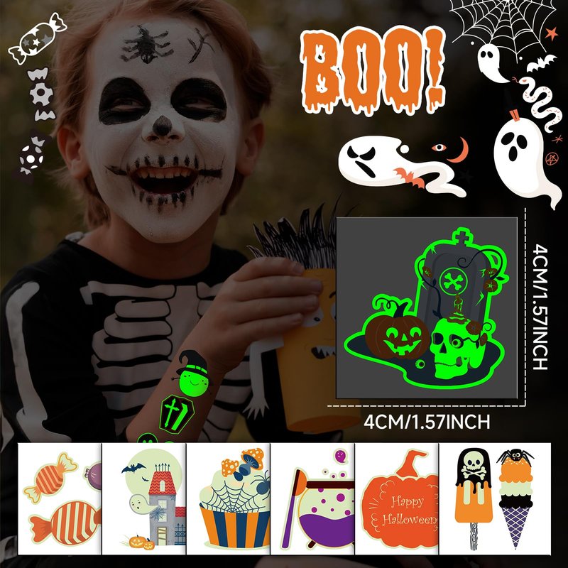 - 【Versatile Party Accessory】Ideal for a wide range of Halloween activities, from costume parties to themed events. Use them as part of your costume, or as a fun addition to party decorations. Beyond Halloween, these tattoos are great for birthday parties, sleepovers, or any themed event where a touch of glow is needed to enhance the atmosphere.
