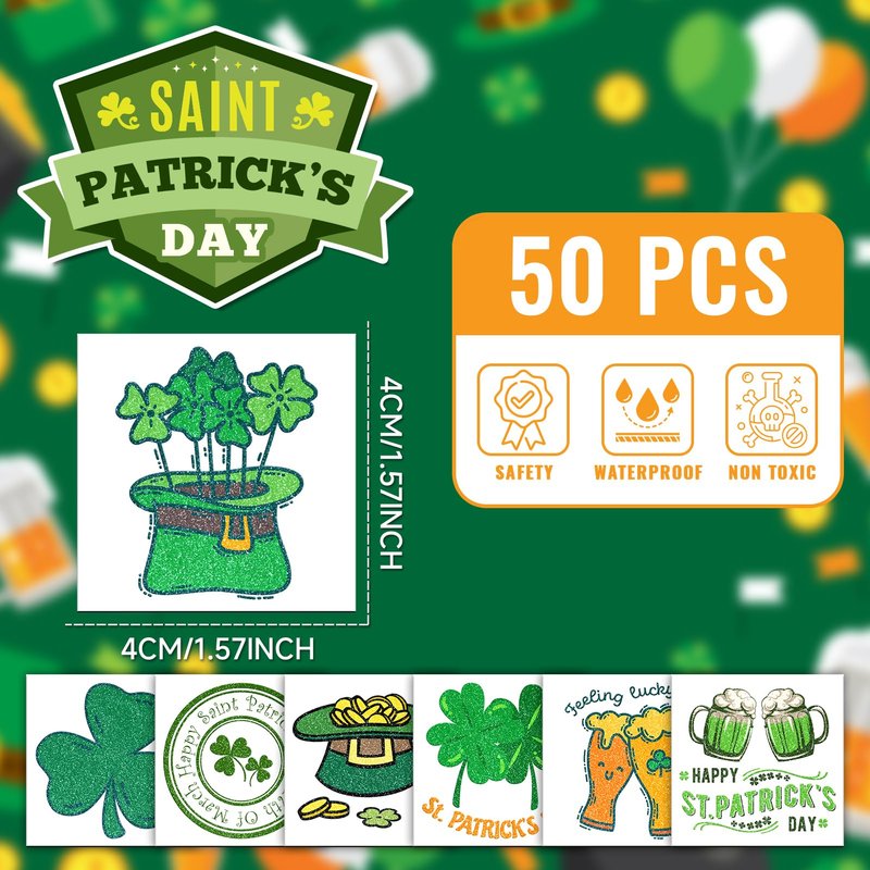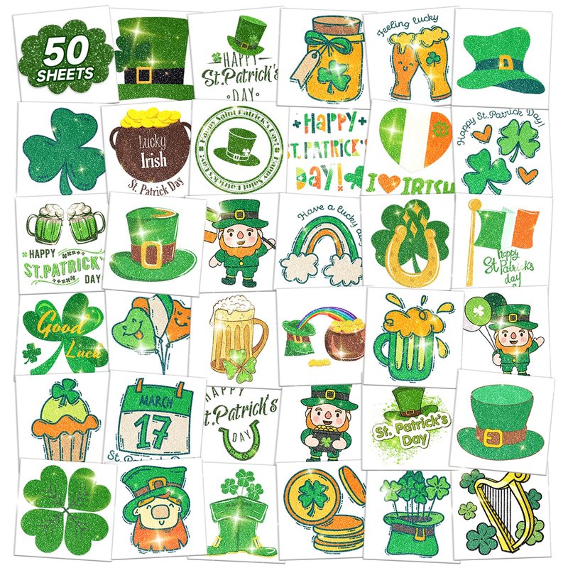 50 Sheets Glitter Shamrock Tattoos Stickers
