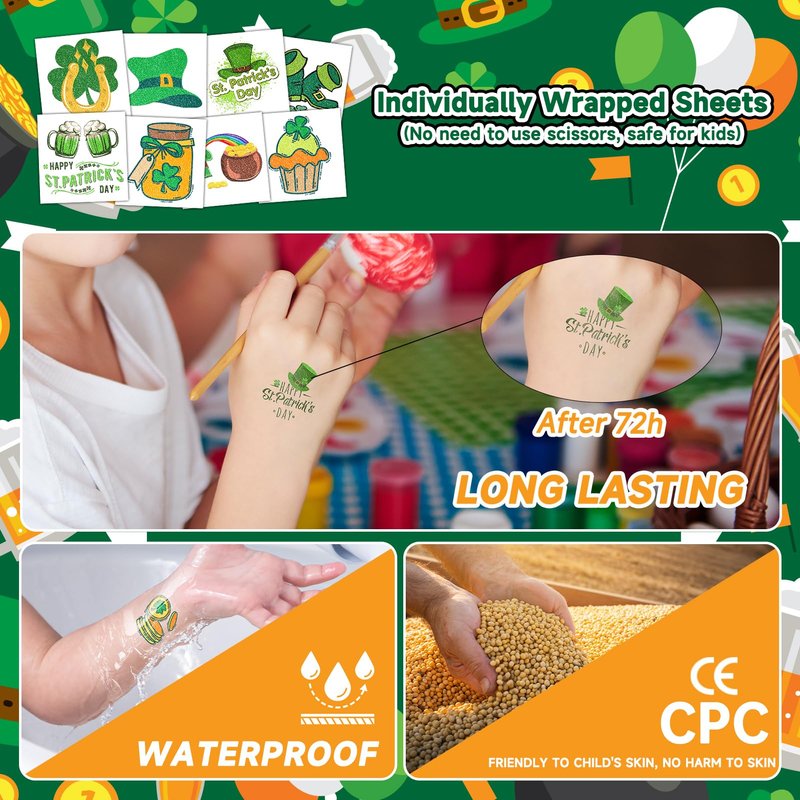 - 【Wide Application】Our St. Patrick's Day temporary tattoos are perfect for St Patricks Day decorations, St Patricks Day accessories, St. Patrick's Day celebrating activities, making you and your family and friends more attractive. Add more fun to St Patrick’s Day.