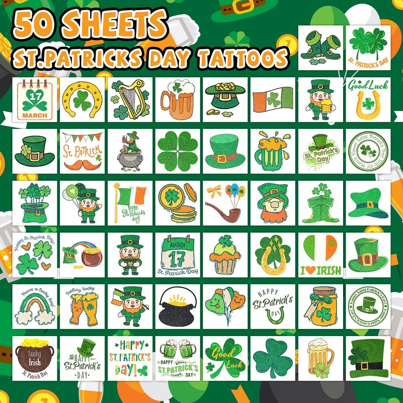 - 【50 Sheets Individually Wrapped】You will receive 50 sheets of St. Patrick's Day tattoos, which are designed with unique and creative patterns and can match your St. Patrick's Day decorations. These tattoos are individual sheets that you can use without scissors. It’s more convenient.