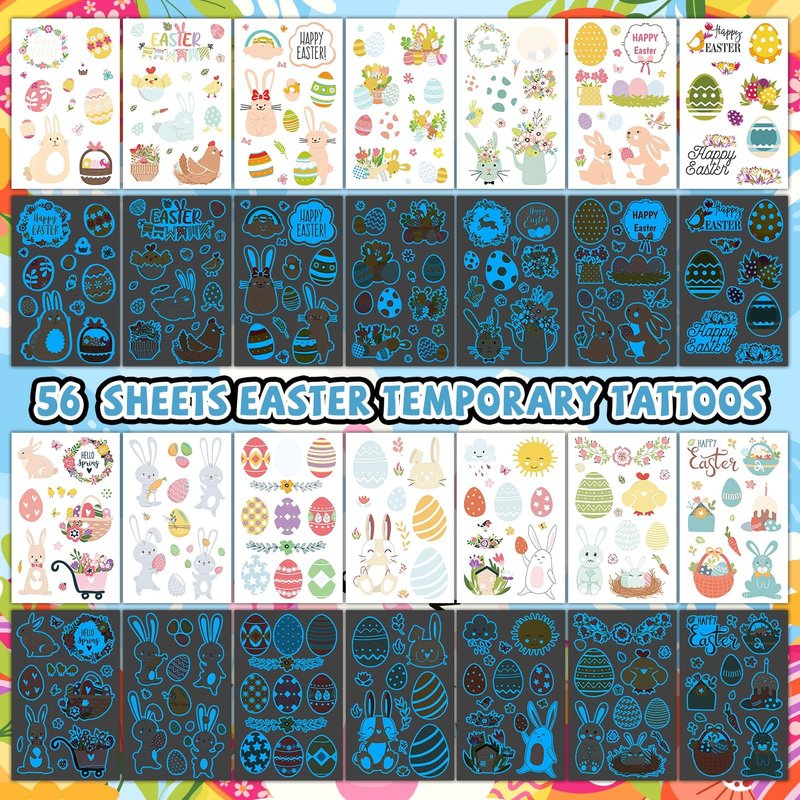 EMOME 56 Sheets Glow Easter Tattoos for Kids, Blue Luminous Temporary Tattoo Stickers Kids for Easter Party Supplies Favors, Easter Temporary Tattoos Egg Fillers Basket Stuffers Goodies for Kids