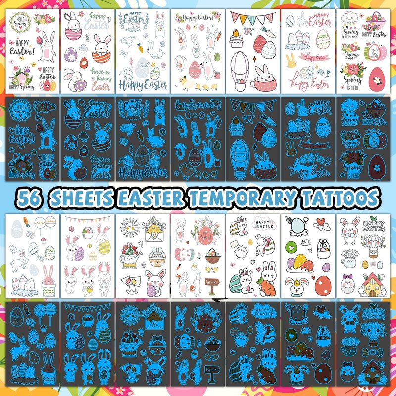 - 【Mixed Styles Patterns for Easter Party】56 sheets of Easter tattoo stickers have mixed styles pattern designs that include cute easter patterns, such as bunnies, eggs, flowers, carrots chicks, etc. There are multiple styles for kids to choose from.