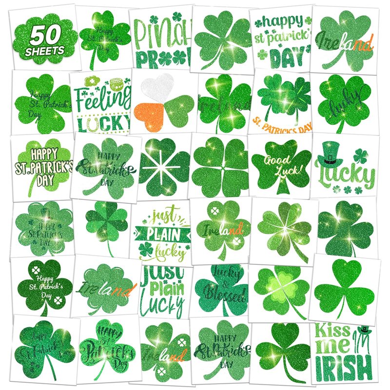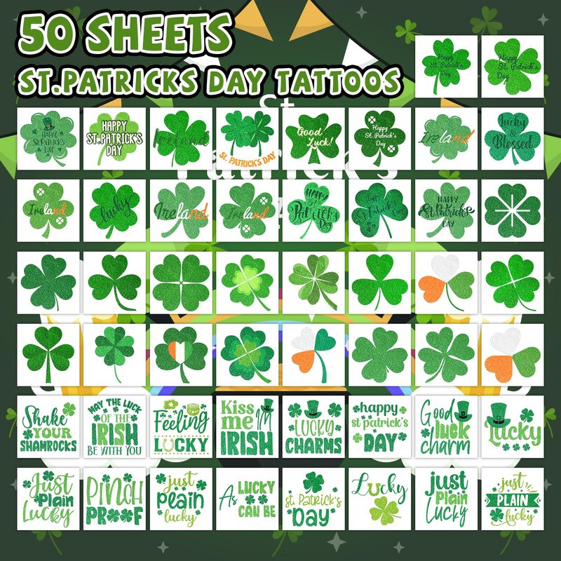 - 【50 Individually Wrapped Sheets】The glitter St Patrick's Day tattoo stickers have 50 sheets with various St Patrick's Day elements. Great quantity and size fit all ages. These St Patrick's Day tattoo stickers are individual sheets that you can use without scissors. It’s safer.