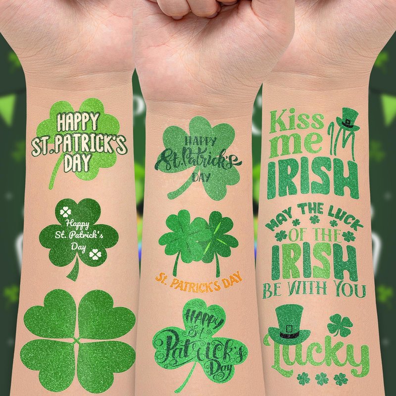 - 【Glitter Tattoos for St Patrick’s Day】St Patrick’s Day tattoo stickers use the glitter process. These cute temporary tattoos will shine under the sun and light with a beautiful appearance. Even at a party with lots of friends, these glitter tattoos will make you shine in the crowd!