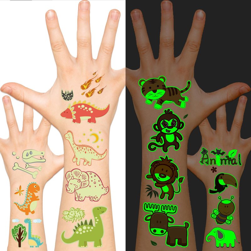 - 【Glow at the Night Tattoo】This kid's tattoo glows softly in the dark after soaking up sunlight during the day. The brightness and how long it glows depend on the light and time. If the luminous effect becomes weak or has no luminescence, expose the tattoo to sunlight or light, and it will glow again.