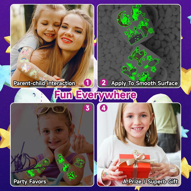 - 【Party Favors for Girls】Our enchanting girls' stickers are perfect for a variety of occasions, including girls' birthday parties, and party favors, supplies, and goodie bags. Ideal as party favors, these tattoos are a delightful addition to girly birthday parties and luminous events, and as toys for girls who love the tattoo's charm.