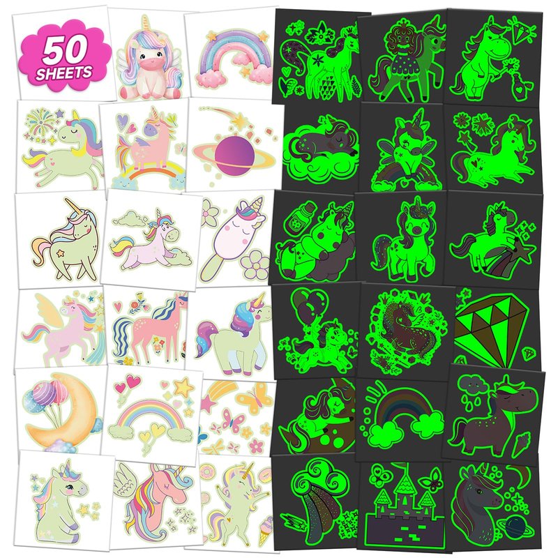 - 【Temporary Tattoos for Girls】The package includes a delightful collection of 50 individual temporary tattoos, ensuring that every child at the celebration can receive an adorable tattoo. These luminous designs are sure to add a touch of magic and enchantment to any event, making them the perfect choice for a memorable and fun-filled gathering. A Sparkling Addition to Your Party!