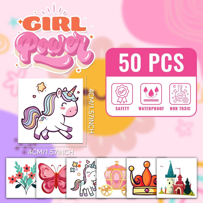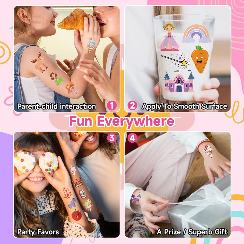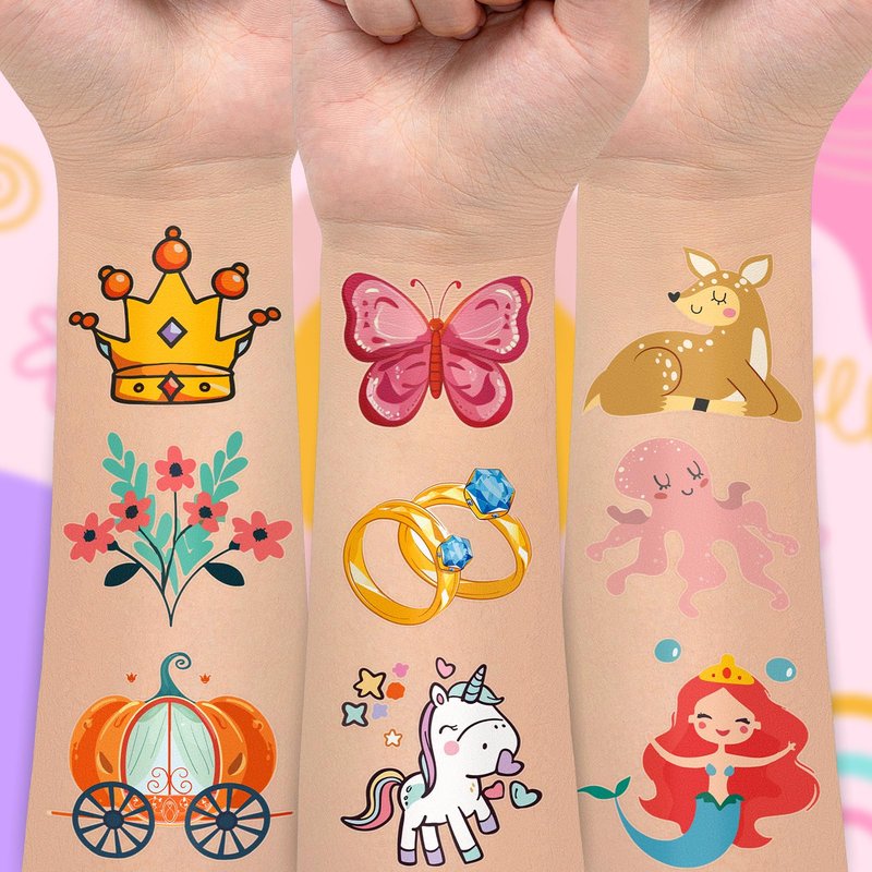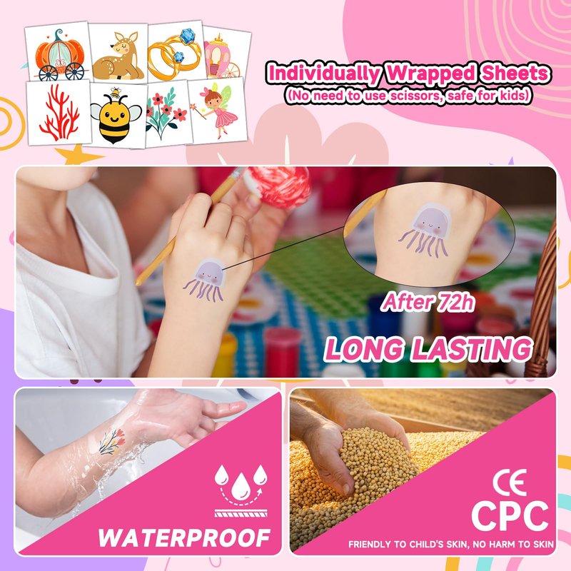 - 【Girls Party Accessories 】Great for girls' birthday parties, baby showers, little girl theme parties, goodie bags, classroom rewards, etc. The waterproof tattoos will not come off easily, usually lasting 3-5 days.