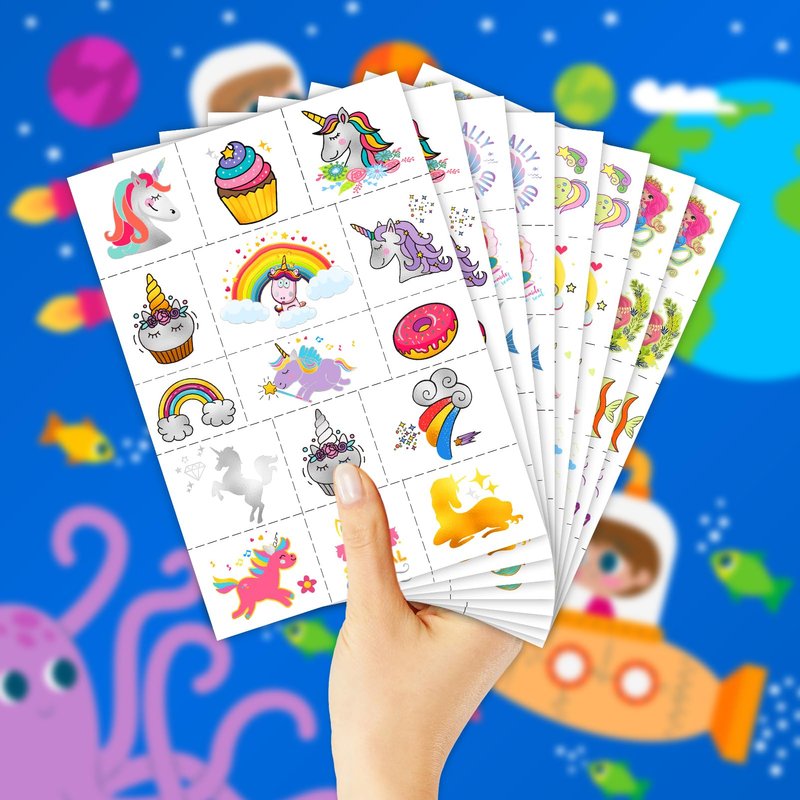 - 【Waterproof & long-lasting】Kids temporary tattoos are waterproof and can be used by children in a series of parties such as pool/beach/shower, semi-permanent tattoos Would stay on the skin for 3 to 5 days, and different body parts last for different times.