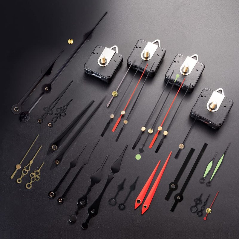 - A Deluxe Combo for Clock Maker Lover: One set include 9 pack clock hands, 12 pack clock mechanism for clock repair replacement or clock DIY, applicable to three-dimensional embroidery, craft clock, clock repairing, replacing or making a clock