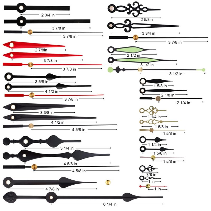 - 12 PACK CLOCK HANDS: Including modern and retro classic clock hands, fit for clock face from 2~16 in diameter; you can pick out the style and length of the hands that look best for clock replacement or DIY at no additional charge
