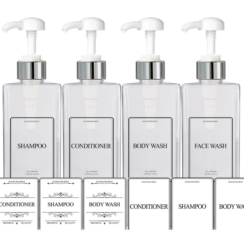 - 【Stickers Included】 Use waterproof labels: shampoo, conditioner, body wash, soap easily. Ideal for the modern bathroom and kitchen to dispense hand washing, DIY cleaners, essential oil blends etc.