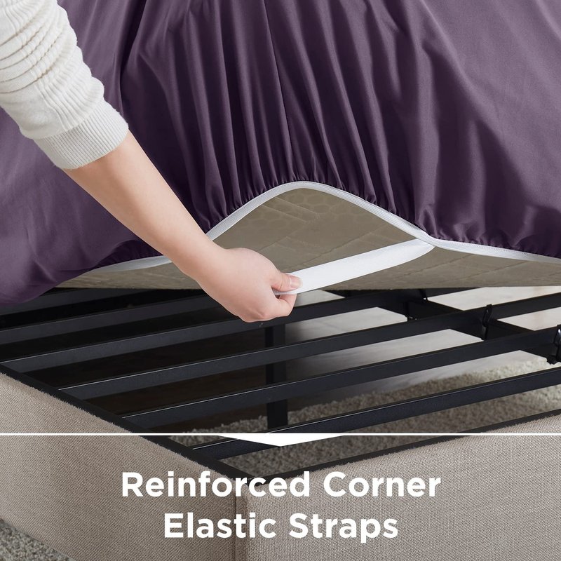 - Extra Deep Pocket Fitted Sheets That Stay On All Night Long: This fitted sheet is designed with a reinforced, stretchable elastic band around the edge, so it won’t ride up or move around in the middle of the night. We even added fitted sheet straps in all 4 corners to ensure a snug, secure fit.