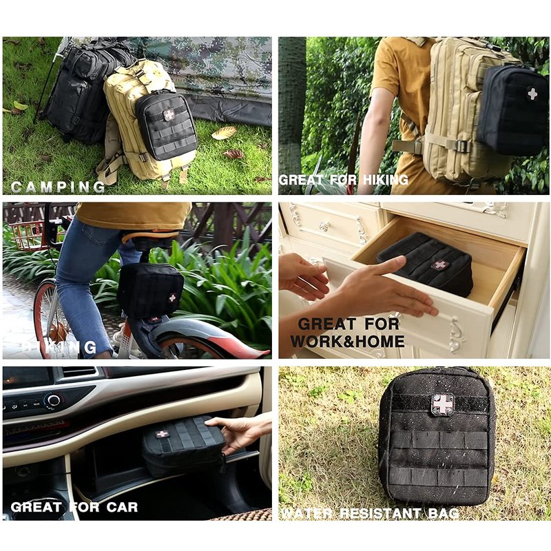 - ★MOLLE SYSTEM: Molle system on the back can attach the kit to any MOLLE compatible gears and also a bicycle, motorcycle, backpack, belt, vehicle seat etc, easy to attach and unfasten.