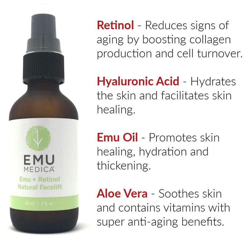 Emu Medica Natural Retinol Cream 2.5% For Face - Retinol Cream For Face, Anti-Aging Cream, Wrinkles, Fine Lines, Even Skin Tone, Age Spots, Sun Spots -Super 2 fl oz size.