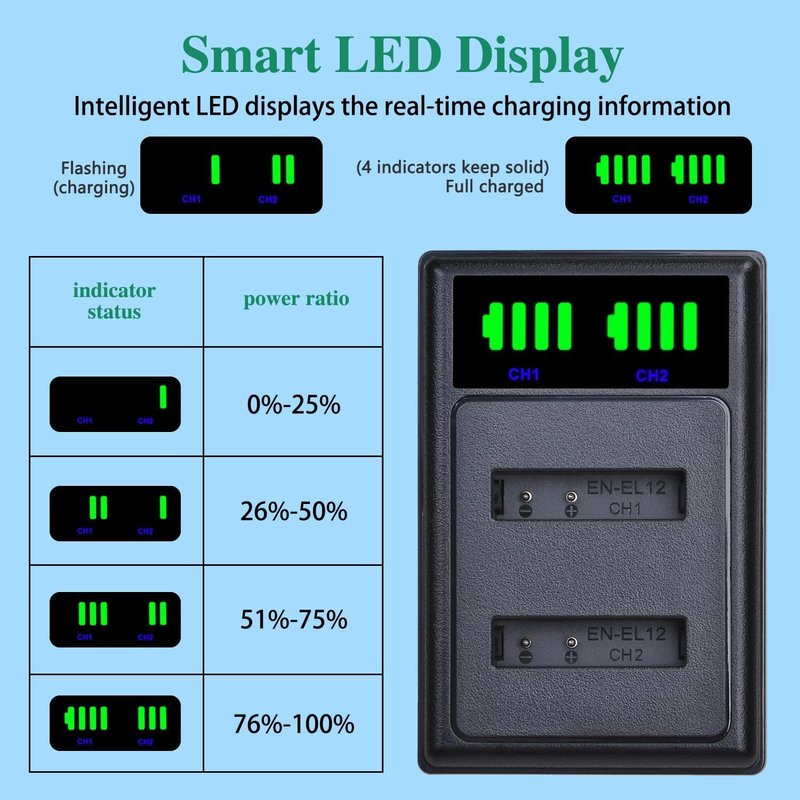 EN-EL20 EN-EL2a Battery Charger is Suitable for Cameras Coolpix P1000, P950, DL24-500, Coolpix A, 1 AW1, 1 J1, 1 J2, 1 J3, 1 S1, 1 V3 Digital Cameras LED USB Display Dual Charging