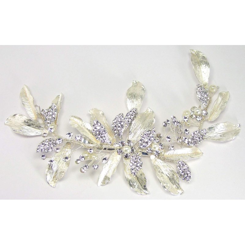 - From Enchanted Brides beautifully hand-made couture bridal/wedding hair accessory collection: Couture bridal hair clip of hand-wired metal leaves and rhinestone-encrusted leaves with crystal rhinestones and pearls on twisted wires