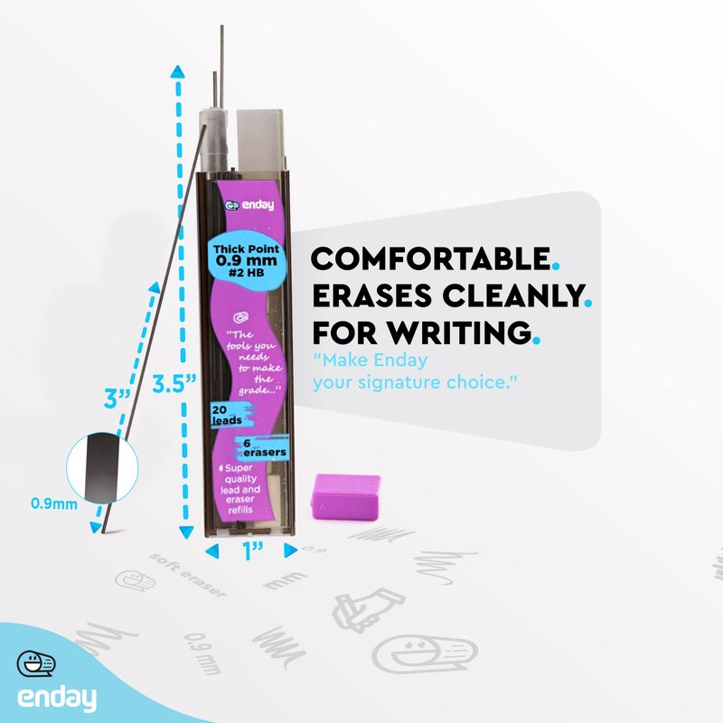 Enday Mechanical 0.9 Lead Pencil and Eraser Refills, Black HB #2 Lead 0.5 Refill, White Eraser Refills for Pencil Tops, Pack of 3 (20 Pieces of Lead and 6 Erasers per Tube)
