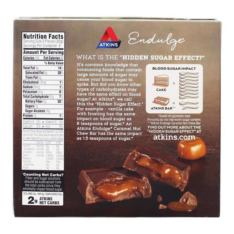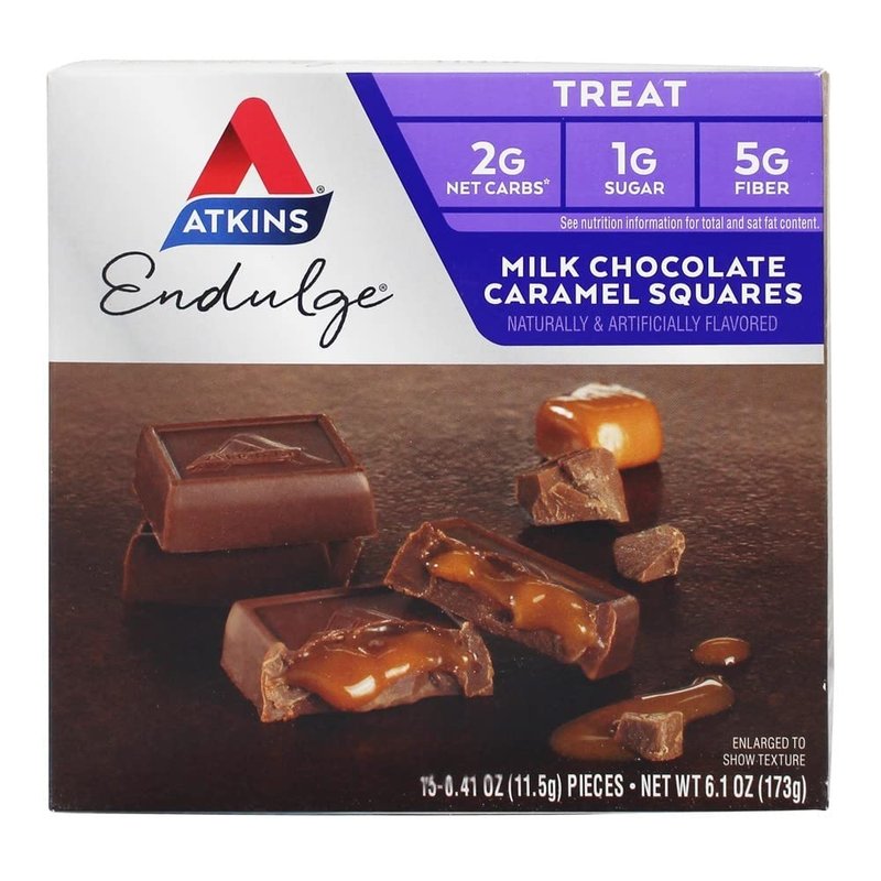 Atkins - Endulge Treat Squares Milk Chocolate Caramel - 15 Pieces Atkins Endulge Treat Squares Milk Chocolate Caramel are the perfect way to treat yourself without compromising your low carb diet. Atkins Milk Chocolate Caramel Squares are made with indulgent caramel wrapped in a rich chocolaty coating. Indulgent Dessert Without All the Added Sugar 1g Protein, 1g Sugar,