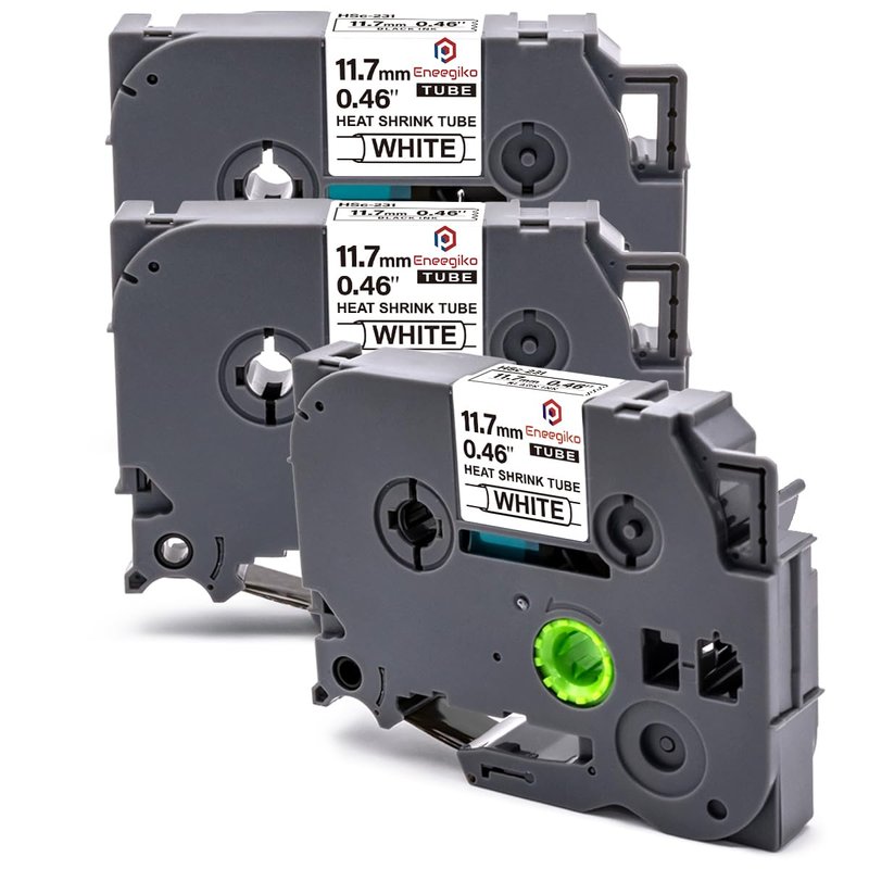 - Package Includes: 3 Pack, Compatible with Brother HSe -231 Heat Shrink Tube Labeling Tape; [Color]: Black on White; [Size]: 0.46 inch (11.7mm) x 4.9 feet (1.5m)