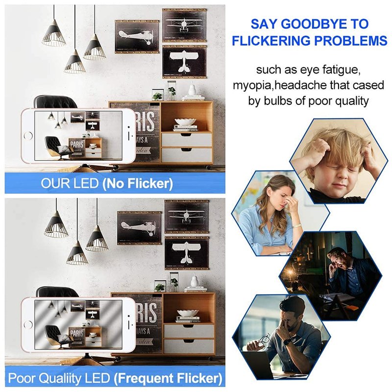 - 💡【Eye-care & Eco-friendly】UL Listed! No flicker, no dazzle, no breakable parts, meanwhile very healthy to your eye. No lead or mercury, no IR radiation