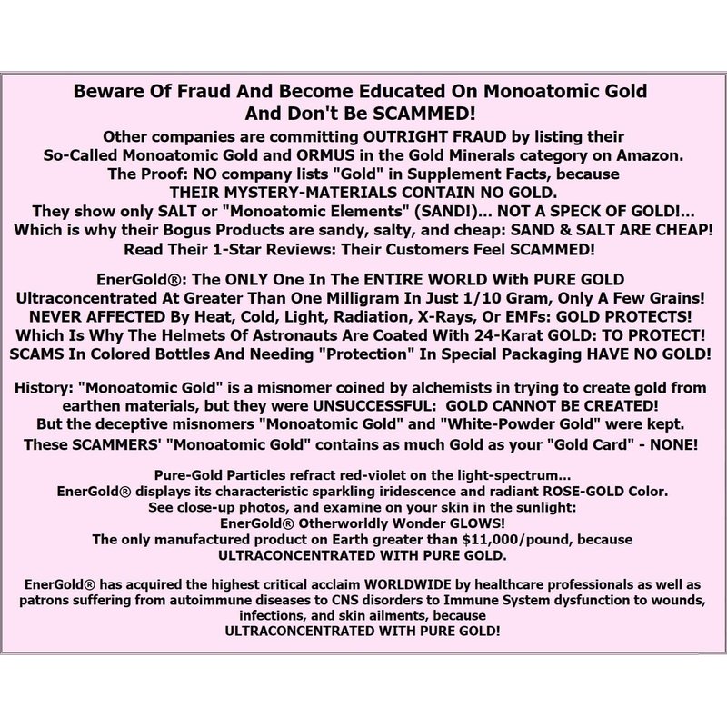 EnerGold is the ONLY Monoatomic Gold/ORMUS in the ENTIRE WORLD that contains pure gold, and ultraconcentrated at >2 milligrams in only 1 teaspoon! (See Supplement Facts)