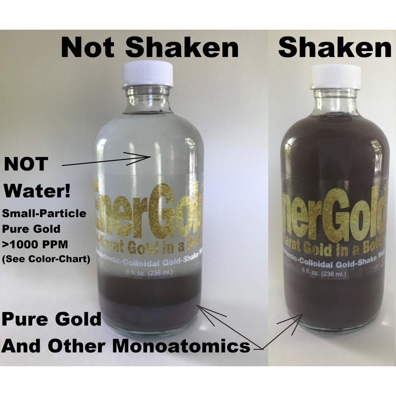 Greater than the equivalent of 6 .1-oz. vials of our Monoatomic Gold/ORMUS in solution of our 1000-ppm Colloidal Gold in each 8-oz. bottle.
