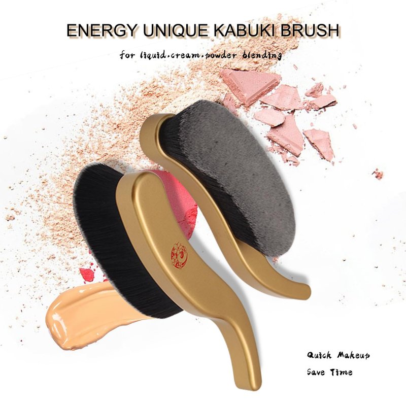 ENERGY Large Foundation Brush Flat Kabuki Brush for Liquid Cream Powder Blending Buffing Soft Vegan Synthetic Bristles Quick Makeup Cosmetics Tool Face Brush with Long Aluminum Handle Gold