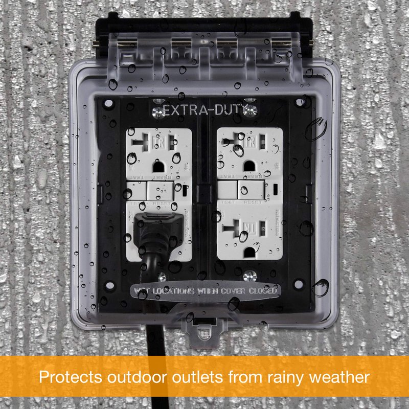 ENERLITES 2-Gang Weatherproof Outdoor Outlet Cover Extra-Duty in-Use Outlet Cover, Outdoor Decorator/GFCI Receptacle Outlets, 6.1” H x 5.2” W x 2.5” D, IUC2V-D, Clear