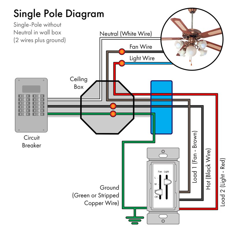 - Max ceiling fan load of 2.5A (3-speed fans only), max light load of (300W incandescent); make sure LED bulbs are the dimmable type; ETL Listed, 1-year warranty, wall plates sold separately