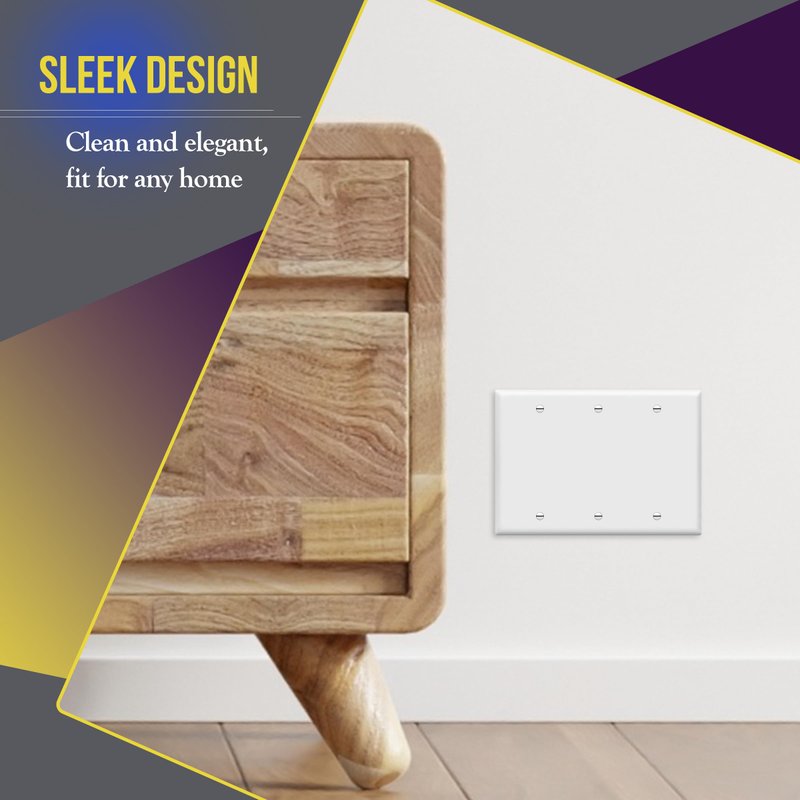 - Easily replaces any 3-gang wall plate of the same configuration; dimensions: 4.5" height x 6.38" length