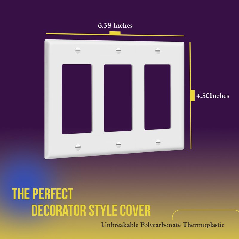ENERLITES Decorator Light Switch or Receptacle Outlet Wall Plate, Gloss Finish, Size 3-Gang 4.50" x 6.38", Polycarbonate Thermoplastic, 8833-W, White