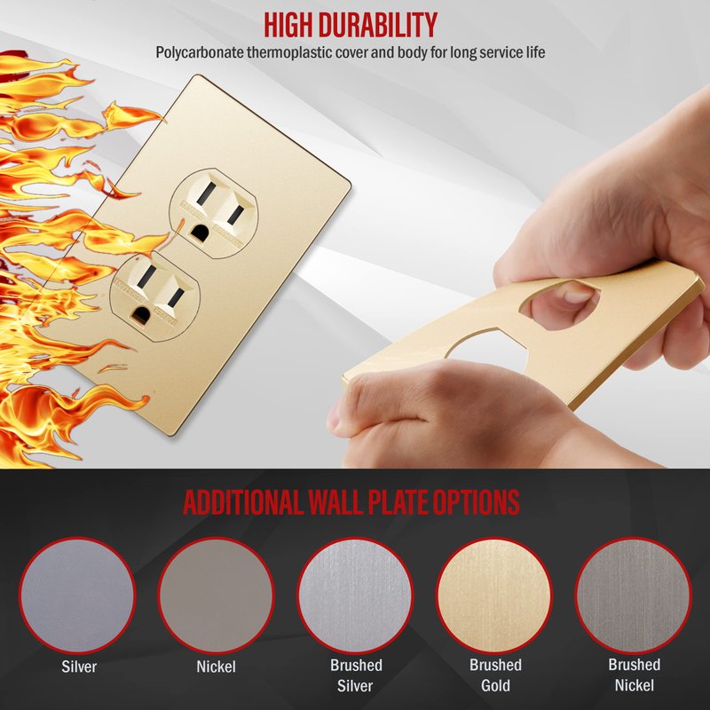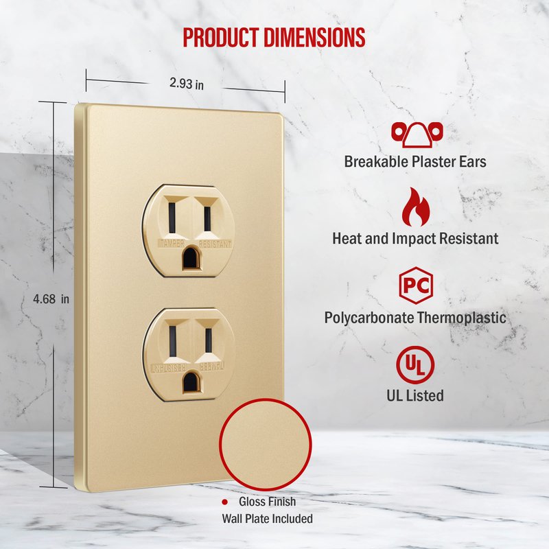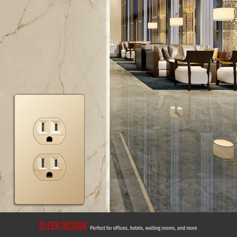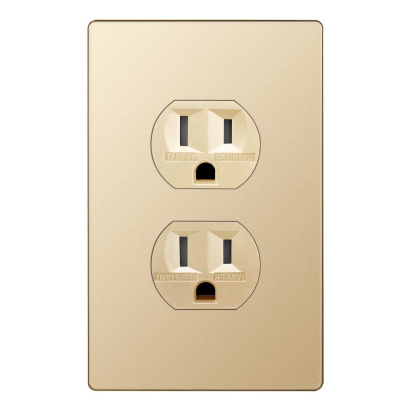 - Superior design tamper-resistant duplex outlet from our Elite Series; replaces any 1-gang in-wall electrical outlet; receptacle face has a soft metallic-colored finish; includes matching screwless wall plate (ENERLITES model SI8821-GD) with a child-safe design