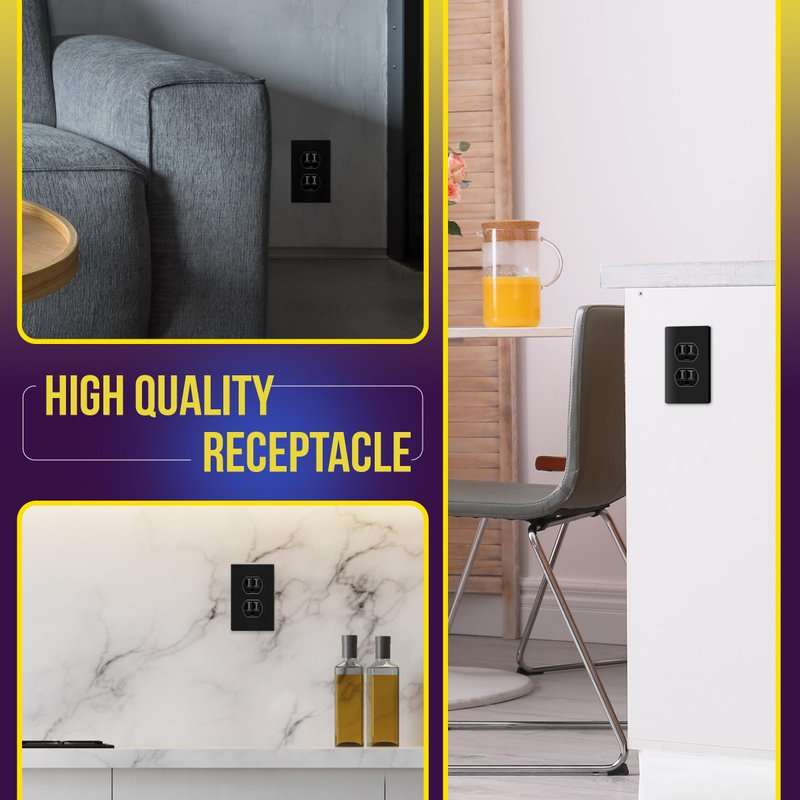 ENERLITES Tamper-Resistant Child Safe Duplex Receptacle Outlet, Residential Grade, 3-Wire, Self-Grounding, 2-Pole, 15A 125V, UL Listed, 61580-TR-BK, Black (10 Pack)