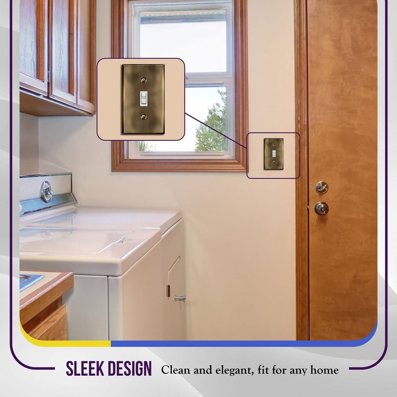 ENERLITES Toggle Light Switch Metal Wall Plate, Stainless Steel Switch Cover, Corrosion Resistant, Standard Size 1-Gang 4.50" x 2.76", Stainless Steel 201, 7711-AB-5PCS, Antique Brass, 5 pack