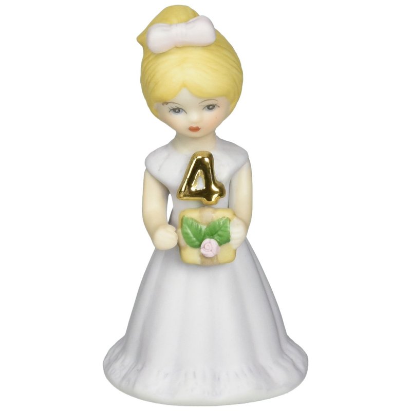 Enesco Growing Up Girls “Blonde Age 4” Porcelain Figurine, 3.5”,Golden,rose