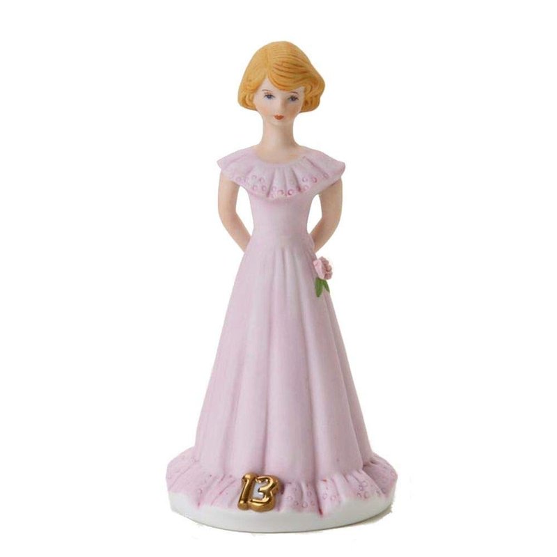 Enesco Growing Up Girls “Brunette Age 13” Porcelain Figurine, 5.5”, Golden,pink