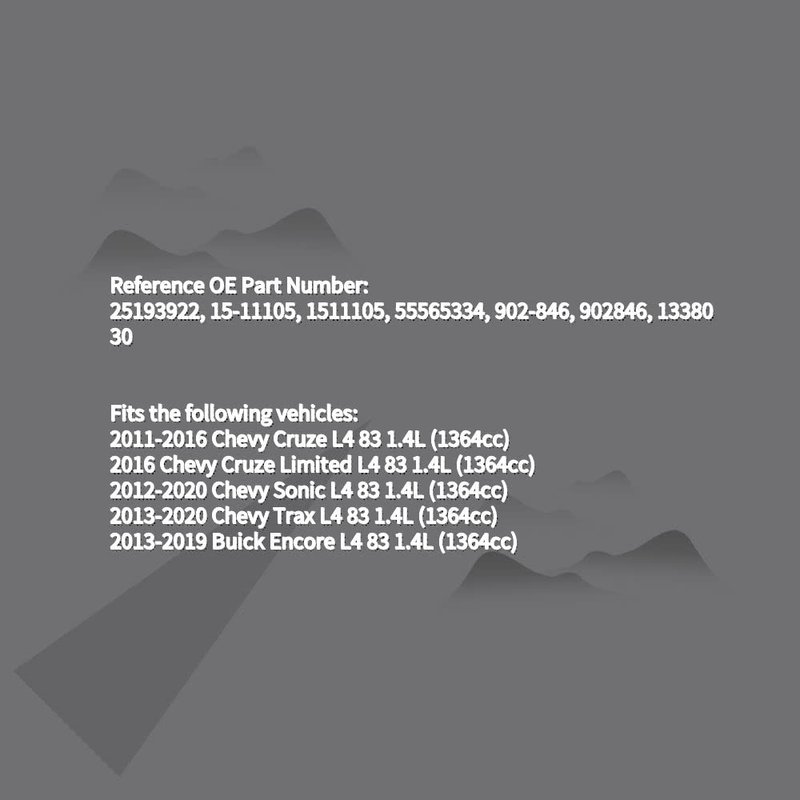 - 【FITS THE FOLLOWING VEHICLES】Fits 2011-2016 Chevy Cruze L4 83 1.4L, 2016 Chevy Cruze Limited L4 83 1.4L , 2012-2020 Chevy Sonic L4 83 1.4L, 2013-2020 Chevy Trax L4 83 1.4L, 2013-2019 Buick Encore L4 83 1.4L