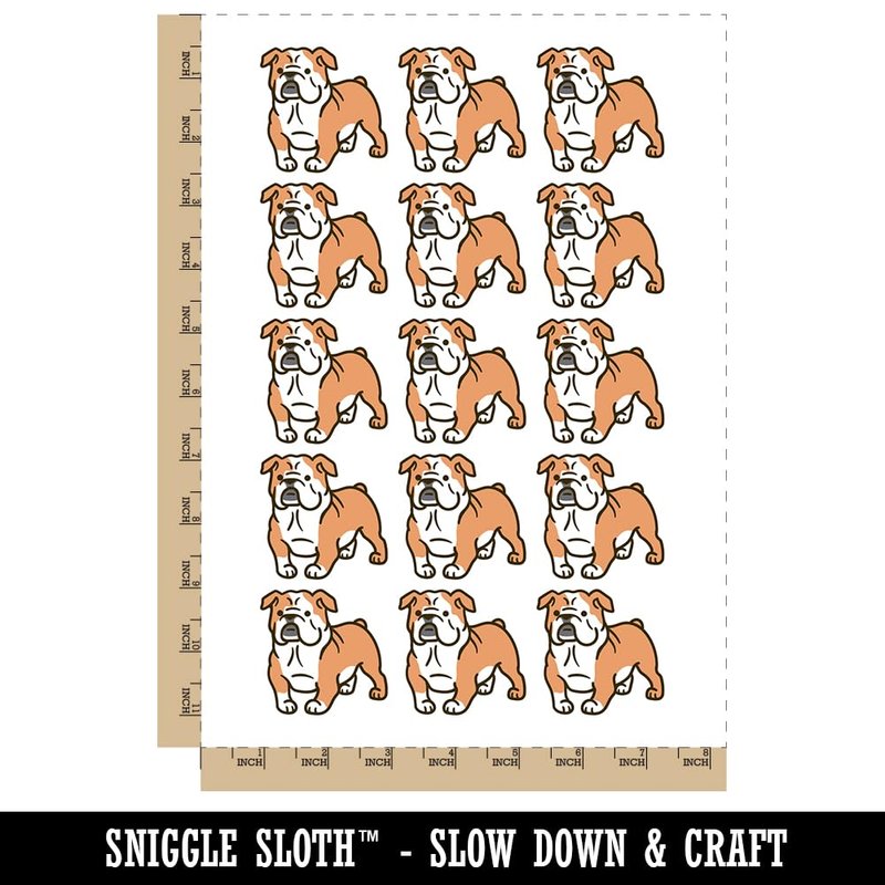 English Bulldog Standing Dog Temporary Tattoo Water Resistant Fake Body Art Set Collection - 15 2" Tattoos (1 Sheet)