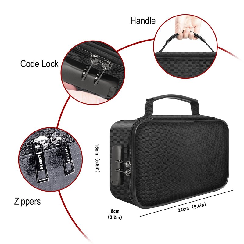 - Multiple security protection: The newly designed small fireproof bag is easy to carry, easy to fold and easy to hide.Design with a strong grab handle for carrying everything you needed easily,2 way zippers make it easier to open and close the bag,combination locks are designed to make your valuables safer.