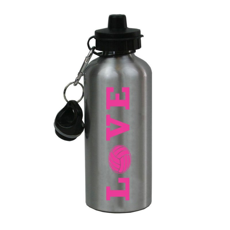 Engraved Cases Silver Aluminum Hot Pink Love Volleyball, 20-Ounce (600 ML) Sport Water Bottle with Sports Top, Carabiner