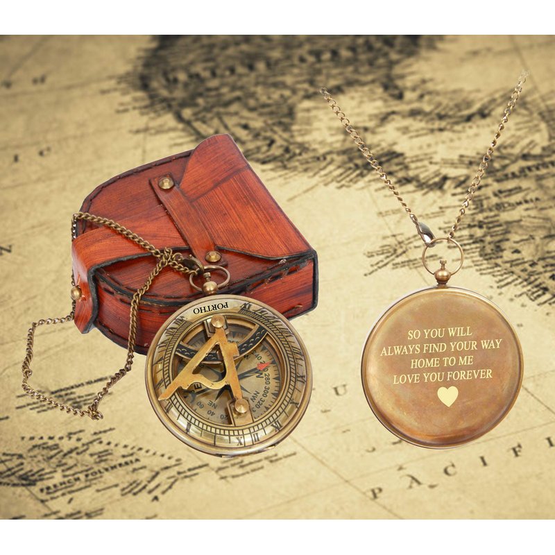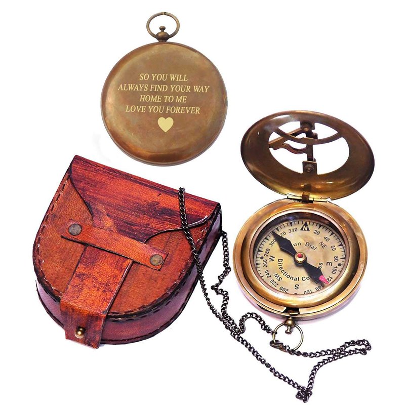 Engraved Sundial Compass with Leather case - Traveler Gift - Inspirational Gift - Adventurer Gift - Wedding Gift - Baptism Gift - Gift for him (Love You Forever)