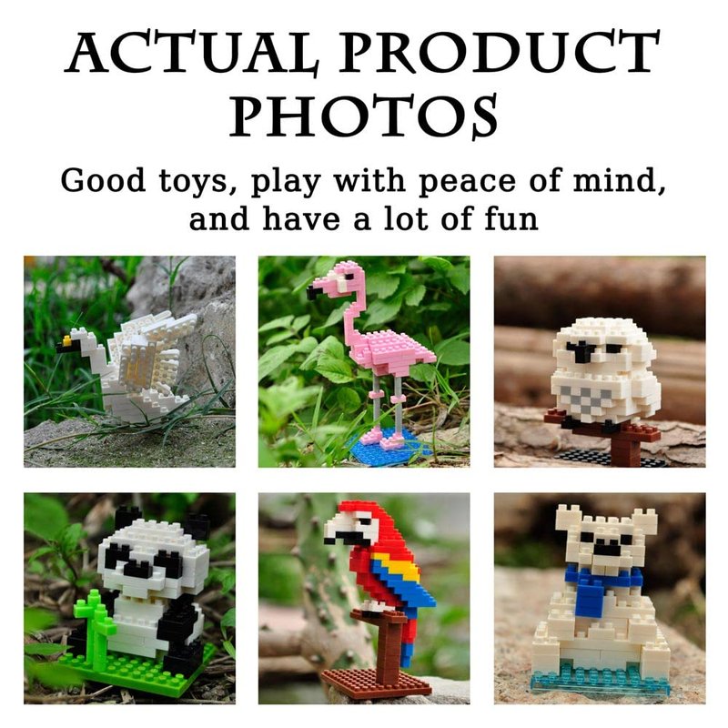 - Cute Forest Animals: This set of building blocks contains 12 different forest animals, such as giraffes, tigers, lions, elephants, zebras, camels, red-crowned cranes, parrots, swans, owls, pandas, white bears, etc., all with exquisite details and cute expressions, making children unable to put them down.