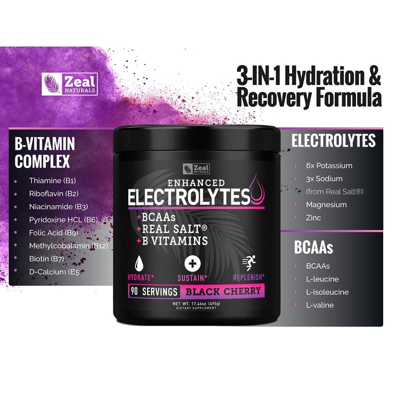 - Enhanced Electrolytes for Hydration & Recovery. Enhanced with BCAAs, Real Salt, and B-Vitamins for hydration, recovery, and stamina support.*