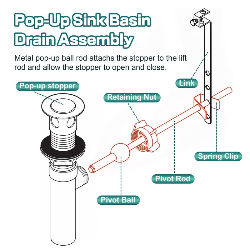 - Quality Materials: the sinks pop up stopper pivot arms are constructed of metal and chrome plated finish that can stand up to daily use
