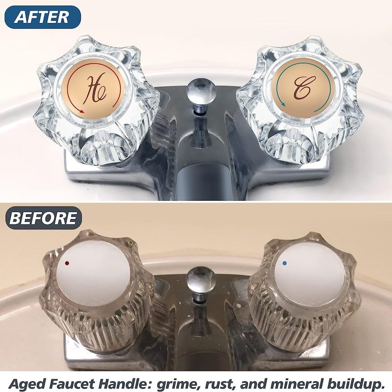 - 【Package Included】the faucet handles contain 4 x clear acrylic handles (2 hot and 2 cold), 4 x handle screws; The index button with the gold monogram stamp is detachable; Exquisite and durable faucet handles, buying this time can solve long term needs