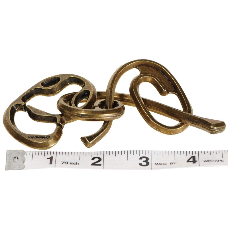 - Three metal interlocking pieces. Objective is to fully separate and then rejoin the three looped pieces.