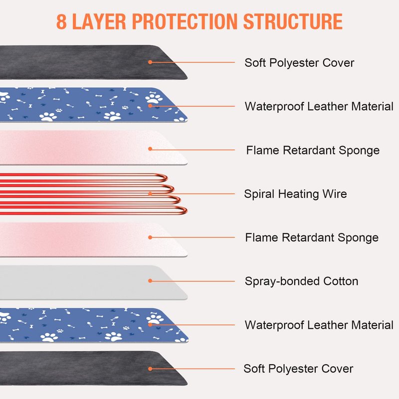- 【Unique Safety Design and Higher Power】8-layer protective construction with UL certified heating wire. The structure will provide your pet with a gentle warm comfort and protect it from burns. Higher Power make it gets warm faster (Please do not use hand to feel it, just sit on it to feel the temperature change).