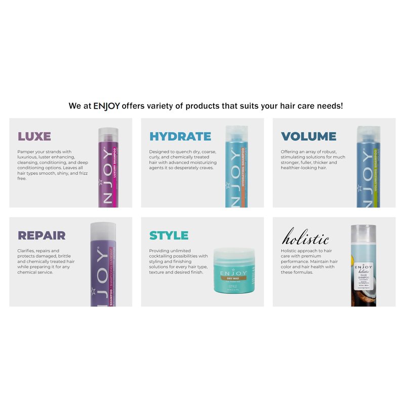 - HAIR REVITALIZATION: Repair, restore, and revitalize your hair with the ENJOY Shine and Smooth; it deeply conditions, hydrates, and moisturizes hair giving it a soft and silky texture; plus it strengthens weak, damaged, and over-processed hair.