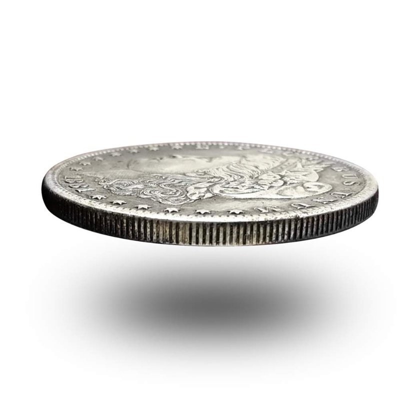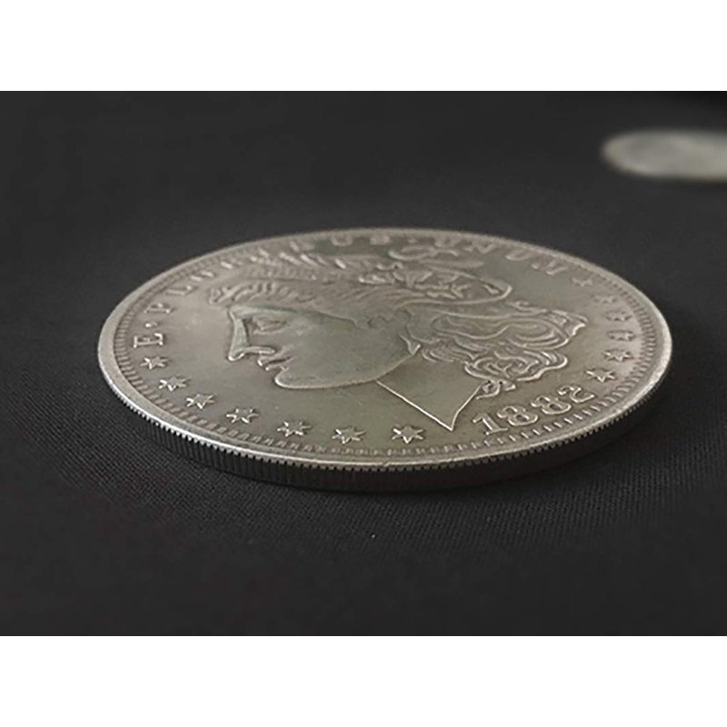 This jumbo coin is a beautifully crafted, made of brass and chromed imitation of the Morgan Dollar. It is a must have for any coin magician or collector.